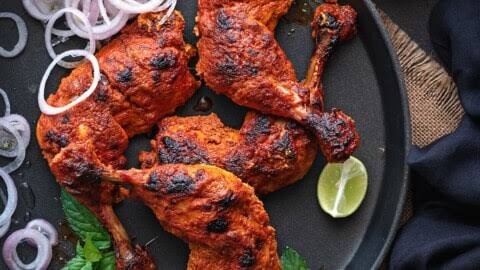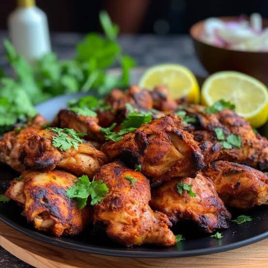 Chicken with bone marinated with yogurt and ground spices and cooked in tandoor