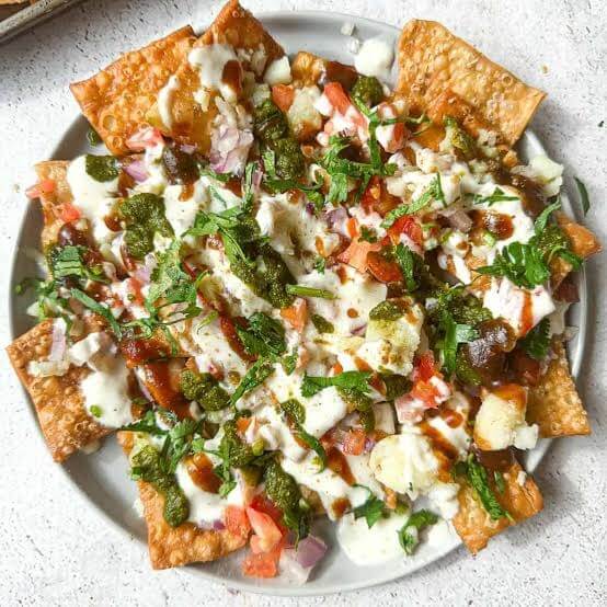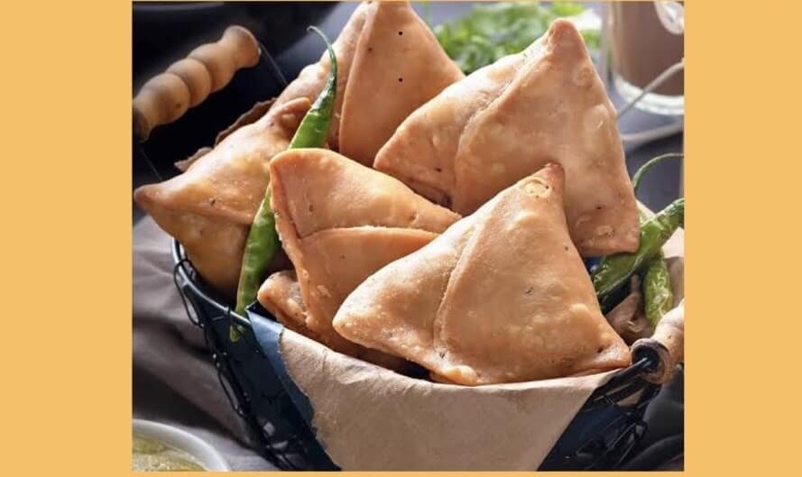 Deep fried pastry filled with potatoes, peas, nuts and Indian spices