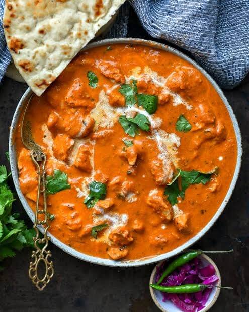 Chicken tikka cooked in cream and butter gravy